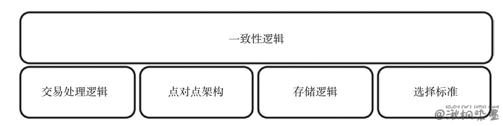 - 存储逻辑,有效交易处理完之后会被添加到交易数据的整个历史记录当中。整个系统的完备性和它实现其明确和转移所有权的能力依赖于交易数据存储的完备性。因此,存储逻辑是通过维护交易数据的整个历史记录来实现的,并通过使数据变更成本变得极其昂贵的设计来保护它们不被操纵或伪造。