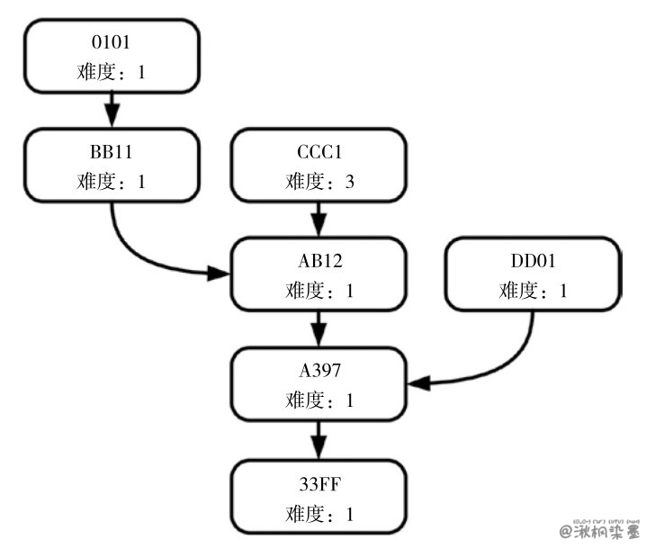 - 数据结构:区块链的数据结构不是由区块构成的一条直线;相反,区块链的数据结构实际上是树状的,不同的分支代表交易数据的不同历史版本。区块链算法的主要挑战就在于让分布式系统的节点挑选一条分支来作为权威链。另外一种存储交易数据的方法就是使用有向无环图表来展示这个树状的数据结构。