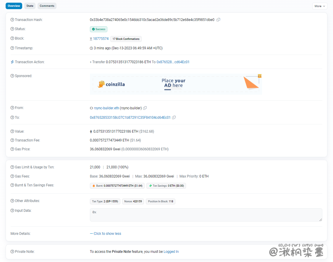 - Actual Tx Cost/Fees:显示了交易总成本,即 gasused*gasprice。