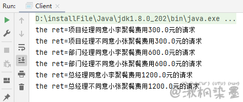 也就是说,当某人提出聚餐费用申请的请求后,该请求会由项目经理、部门经理、总经理之中的某一位领导来进行相应的处理,但是提出申请的人并不知道最终会由谁来处理他的请求,一般申请人是把自己的申请提交给项目经理,或许最后是由总经理来处理他的请求,但是申请人并不知道应该由总经理来处理他的申请请求。