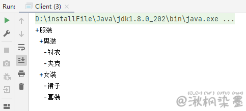 由于要统一两种对象的操作,所以Component里面的方法也主要是两种对象对外方法的和,换句话说,有点大杂烩的意思,组件里面既有叶子对象需要的方法,也有组合对象需要的方法。