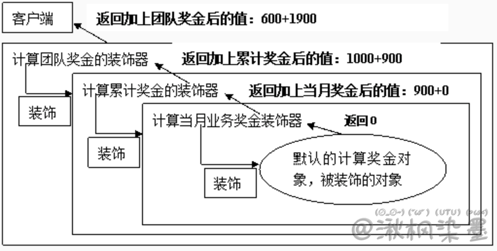 参与同一个奖金的计算,这就意味着可以使用同一个装饰器,但是在装饰器的内部,不同条件下计算公式不一样,那么怎么选择具体的实现策略呢?自然使用策略模式就好了,也就是装饰模式和策略模式组合来使用。
