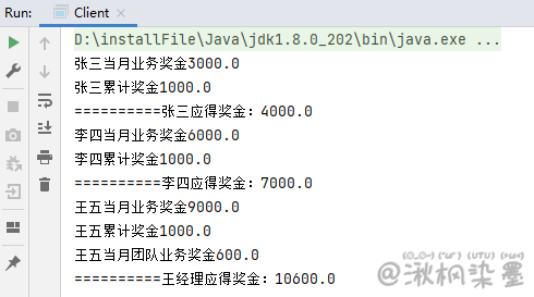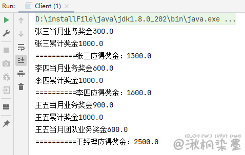 System.out.println(user + "当月业务奖金" + prize.doubleValue());