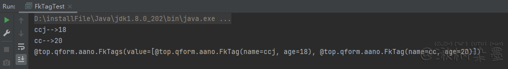 // 遍历修饰 FkTagTest 类的多个 @FkTag 注解