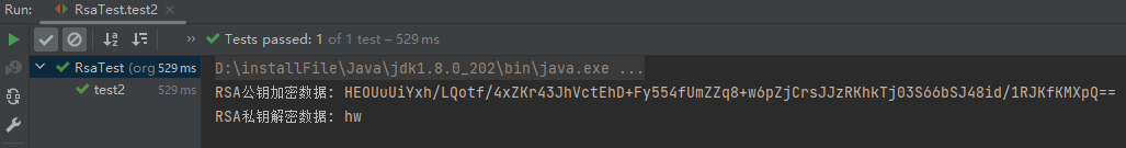 String priDecrypt = RsaUtil.decrypt(privateKey, pubEncrypt);