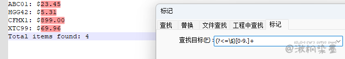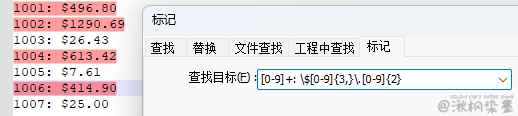- 简化 \d+: \$\d{3,}\.\d{2}