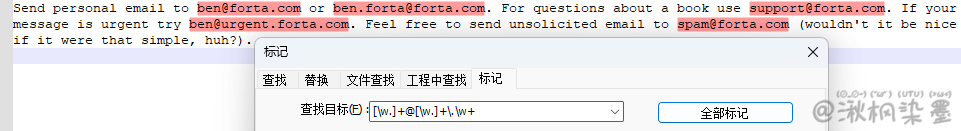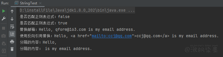 System.out.println("使用反向引用替换:" + text1.replaceAll("\\w+[\\w\\.]*@[\\w\\.]+\\.\\w+", "<a href=\"mailto:$0\">$0</a>"));
