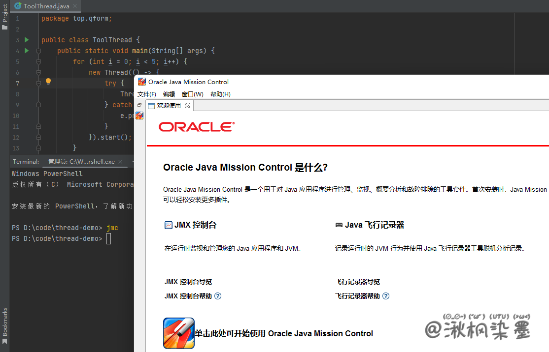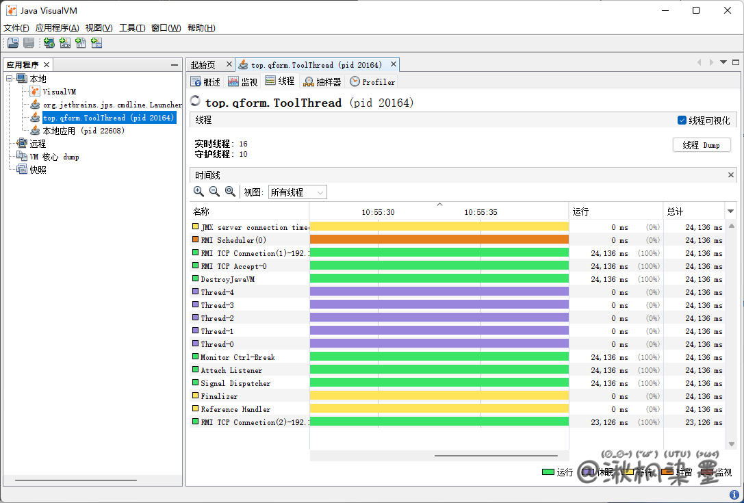 但采用 jvisualvm.exe 命令看不到线程运行的状态,所以推荐使用 jmc.exe 命令来分析线程对象的相关信息。