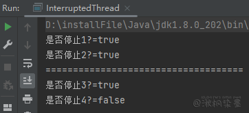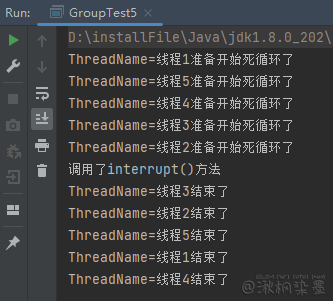 通过将线程归属到线程组中,当调用线程组ThreadGroup的interrupt()方法时可以中断该组中所有正在运行的线程。