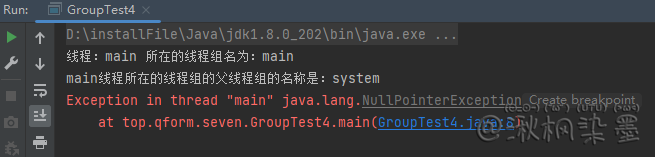 程序运行结果说明JVM的根线程组是system,再取父线程组则出现空异常。