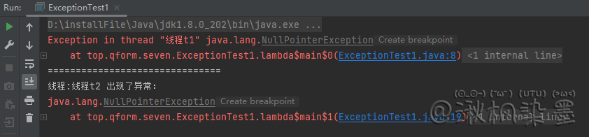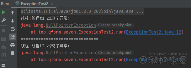System.out.println("defaultUncaughtExceptionHandler的异常处理");