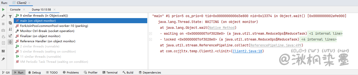 - waiting on <0x000000076f3028e0> (a java.util.stream.ReduceOps$ReduceTask)
