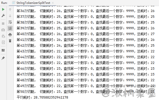 这个工具是 JDK 提供的,也是专门用来进行字符串切割的,如果不用 list 等记录,效果会很好,测试代码如下: