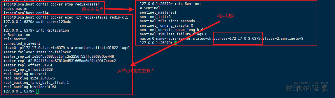 docker exec -it redis-sentinel1 redis-cli -p 26379