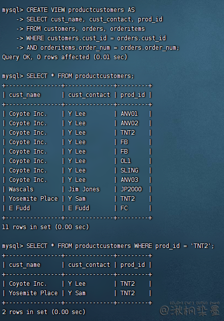可以对视图执行 SELECT 操作,过滤和排序数据,将视图连接到其他视图或表。甚至能添加和更新数据(添加和更新数据存在某些限制)