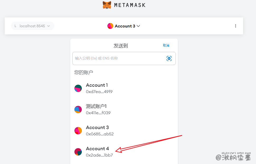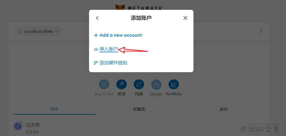 - 从 ganache-cli 生成的私钥中,导入一个测试账户