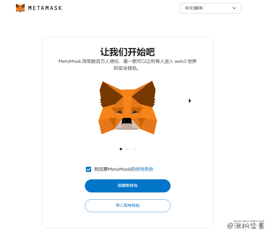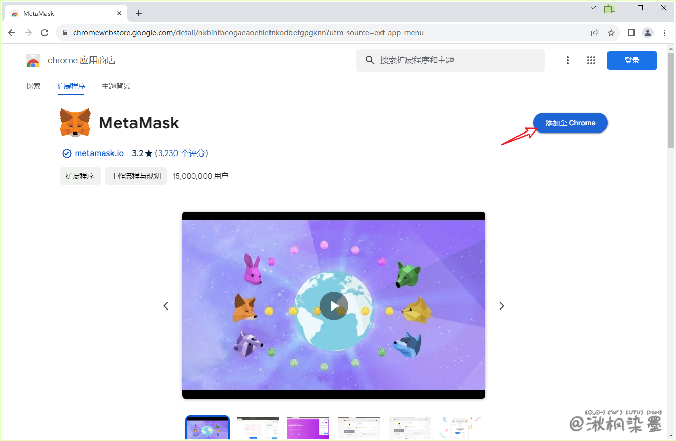 - 可以从 官网 (opens new window) 下载插件,也可以直接在浏览器插件商店中查找,这里以 Chrome 为例,在插件商店查找 MetaMask 并下载。