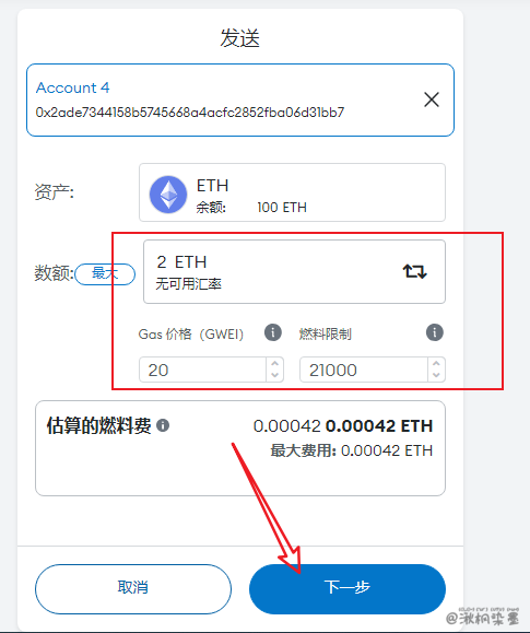 - 转账,这里选择转到另外一个测试账户中