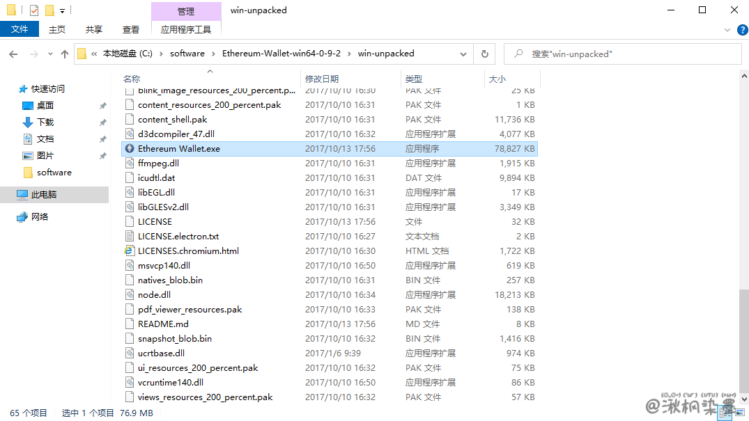 从 github (opens new window) 下载合适安装包,这里我下载的是 Ethereum-Wallet-win64-0-9-2.zip