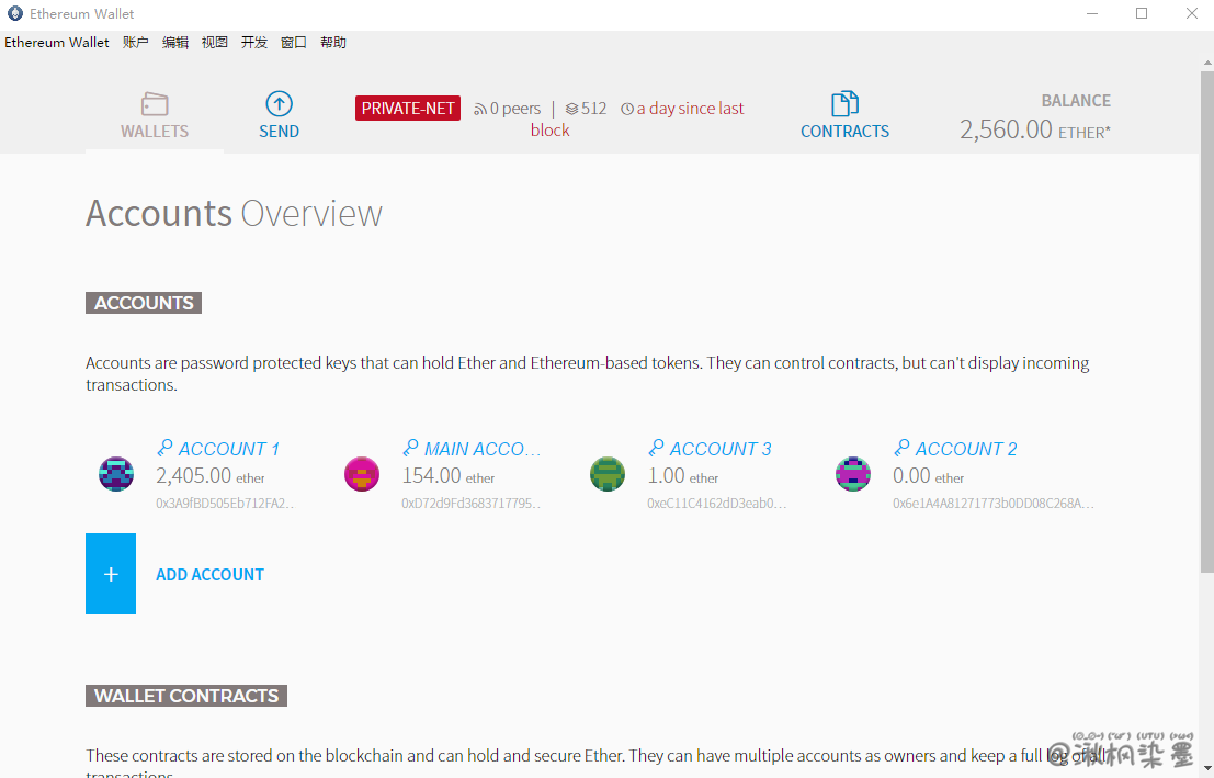 Mist 具有一定的智能性,如果本地运行了一个私有链,它就会识别到并连接上去如果本地没有任何私有网络,它就会连接到 主网 或 Rinkeby 测试网络。一旦连接成功,就可以与以太坊网络进行交互、发送和接收以太坊、部署智能合约、调用智能合约里面的函数。